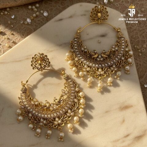 Majestic Pearl Droplet Jhumka Earrings – Premium Gold Plated & CZ Bridal Jewellery