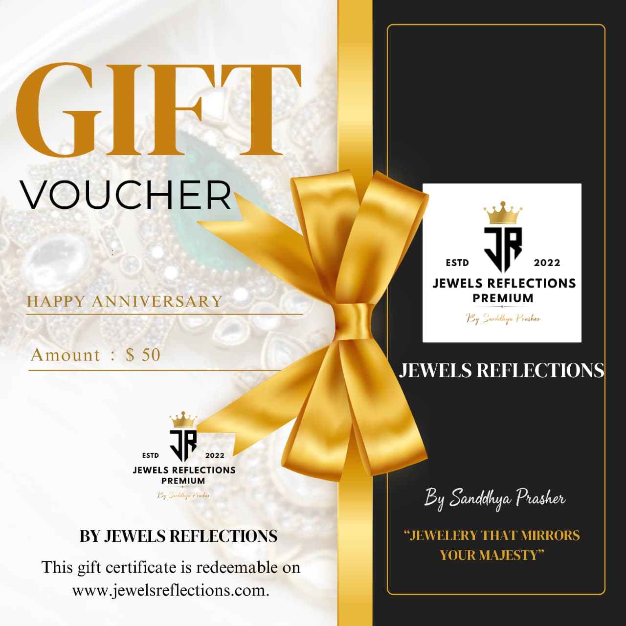 Make every anniversary truly memorable with a gift that reflects your love and their sparkle. At JewelsReflections, our Anniversary Gift Cards offer the perfect way to let your special someone choose the jewelry piece they’ll cherish for a lifetime. From dazzling necklaces and timeless earrings to bespoke handcrafted accessories, our collections are designed to celebrate every moment beautifully.