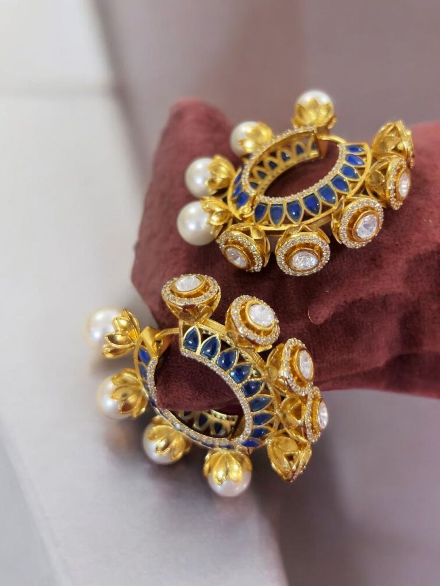 Vibrant and festive, these enamel studs with pearl accents mix bold color with intricate design. Their small yet powerful style makes a statement.