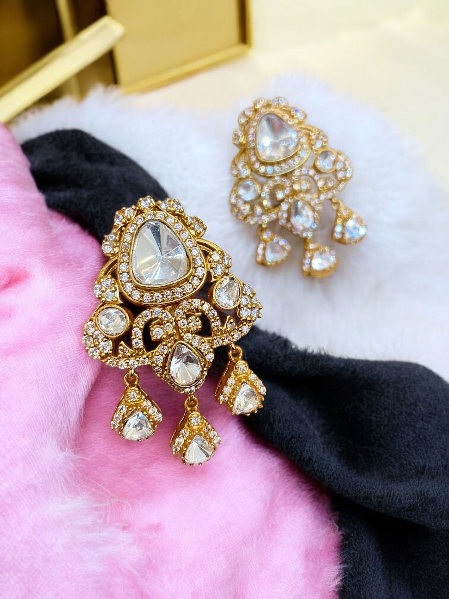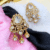 These exquisite earrings feature a regal blend of deep ruby stones and luminous pearls, set in a luxurious gold frame. The intricate design reflects timeless elegance with a modern twist, making them the perfect statement piece for festive and bridal looks.