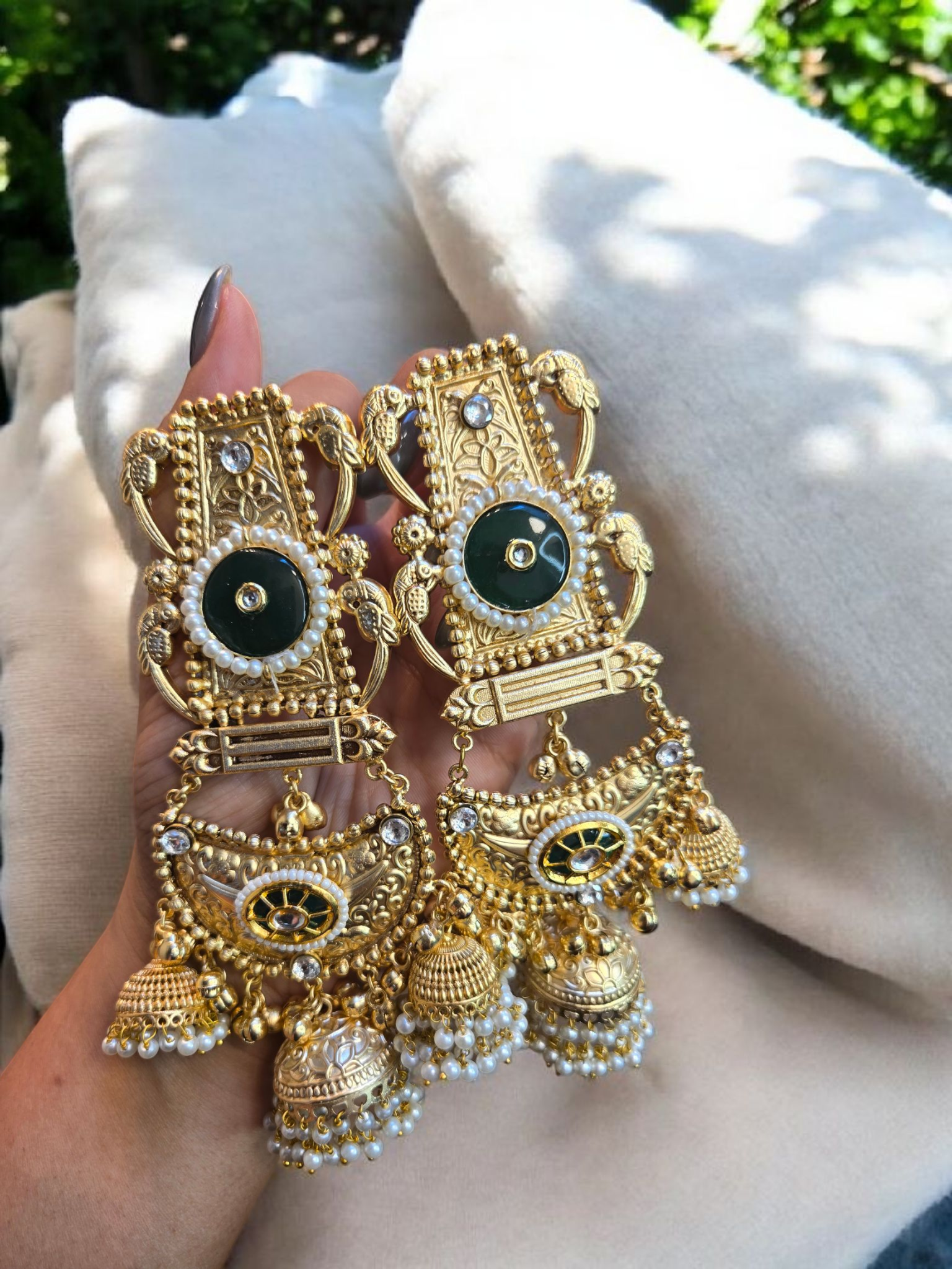 Elegant and bold – these silver-toned chandelier earrings set with deep blue stones reflect modern luxury. A perfect blend of glamour and style, they are crafted to turn heads at every occasion.