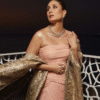 This is a glamorous necklace and earrings set featuring a brilliant combination of green, yellow, blue, and emerald-toned stones. The stones are carefully set against a diamond-studded floral base, giving it an exquisite and royal finish.