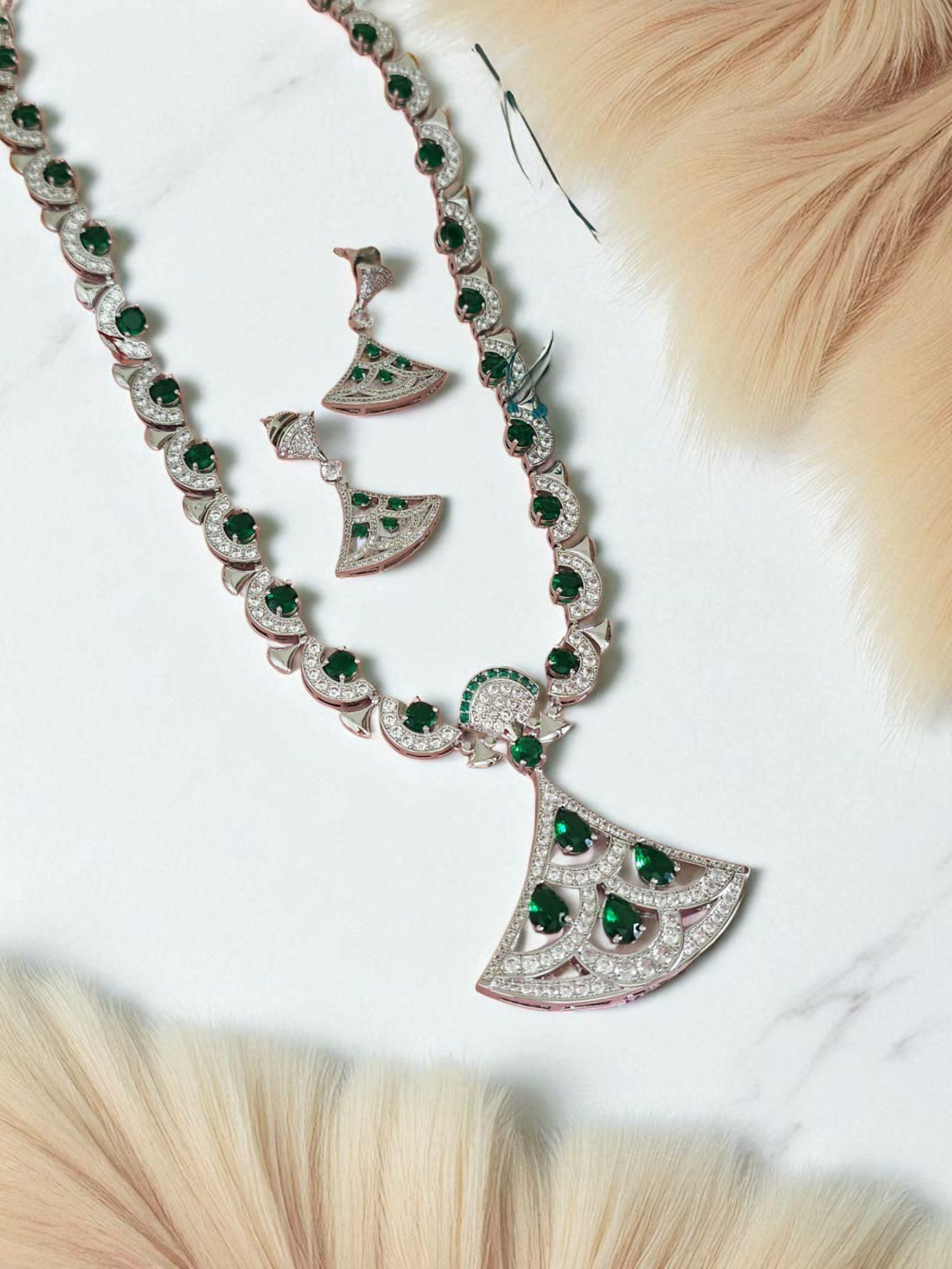 Emerald Fan Necklace Set
