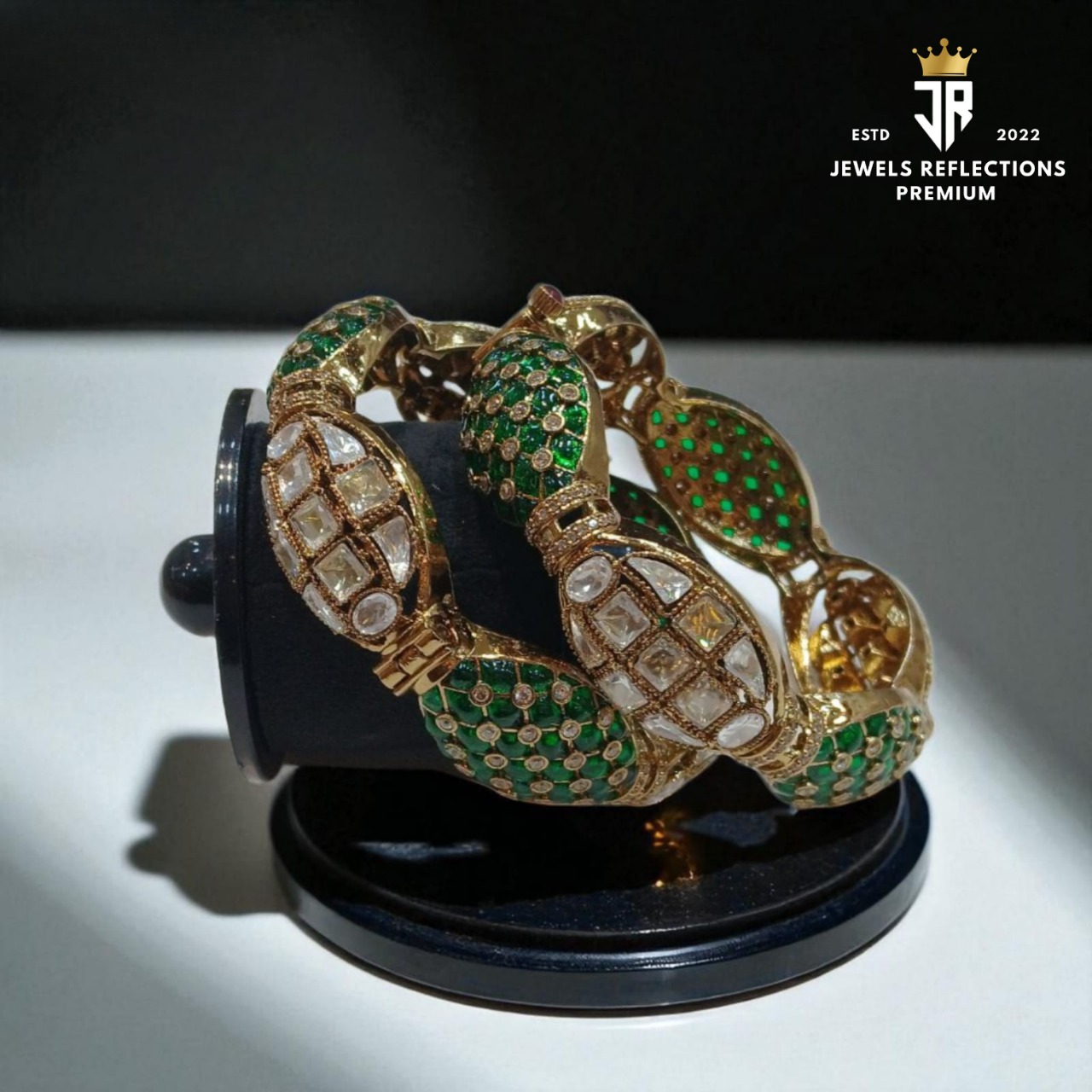 Royal Green & Kundan Polki Designer Bangles – Premium Bridal Collection