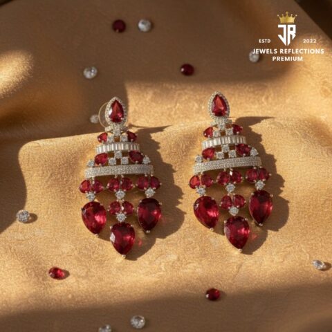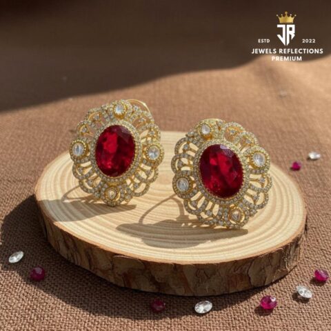 Royal Ruby Halo Stud Earrings – Premium CZ & Gold-Tone Designer Jewellery