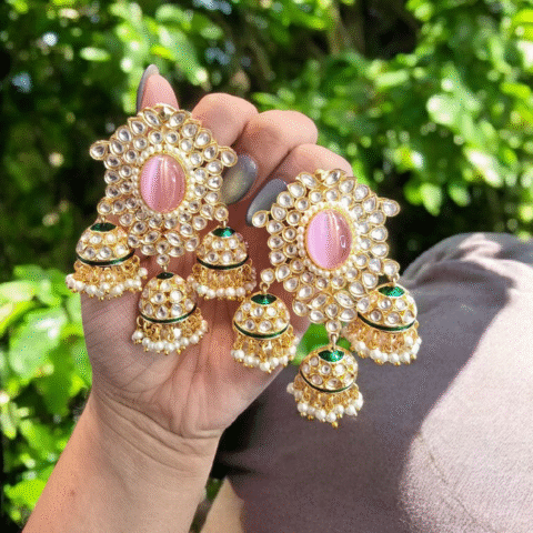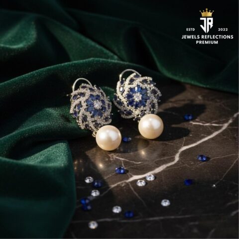 Sapphire Pearl Bloom Earrings – Premium CZ & Blue Stone Designer Jewellery